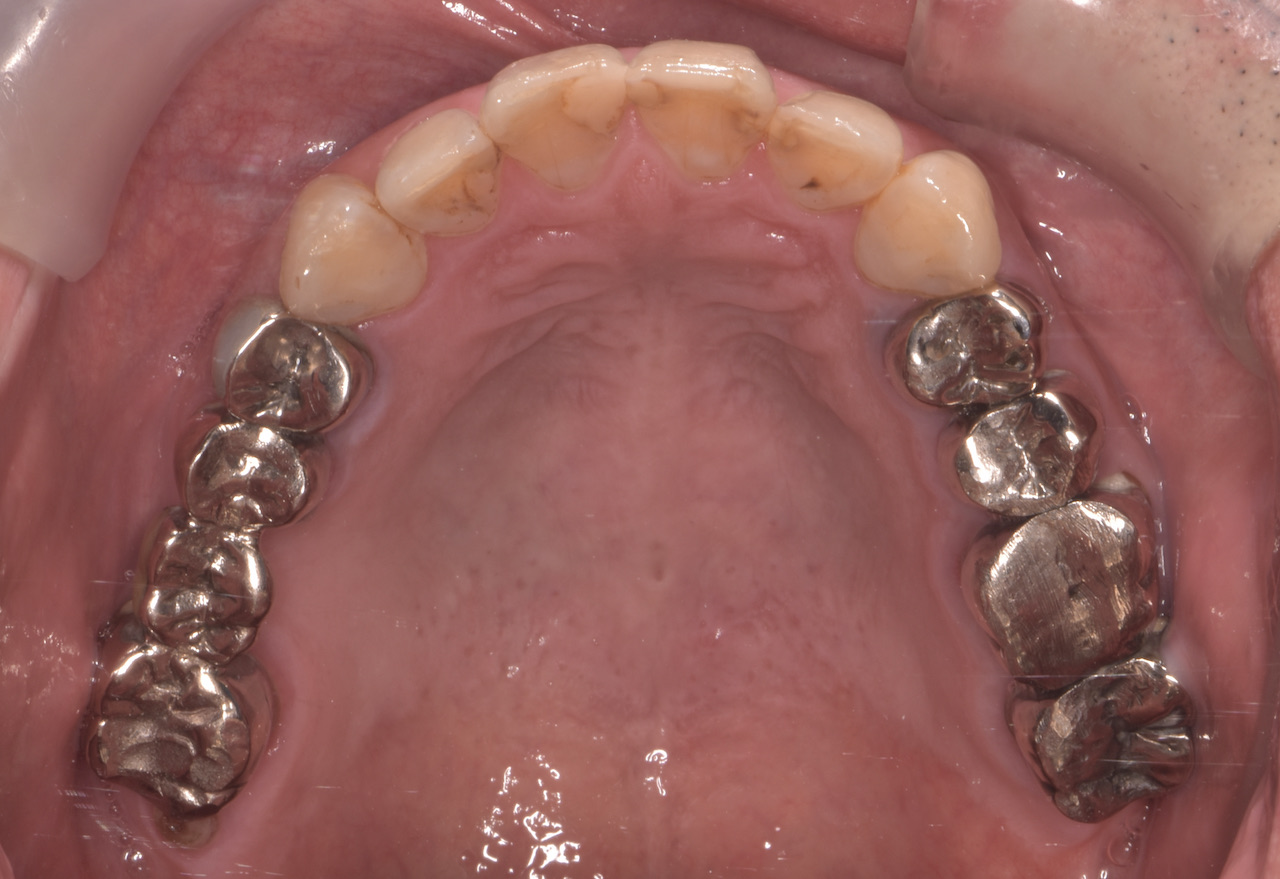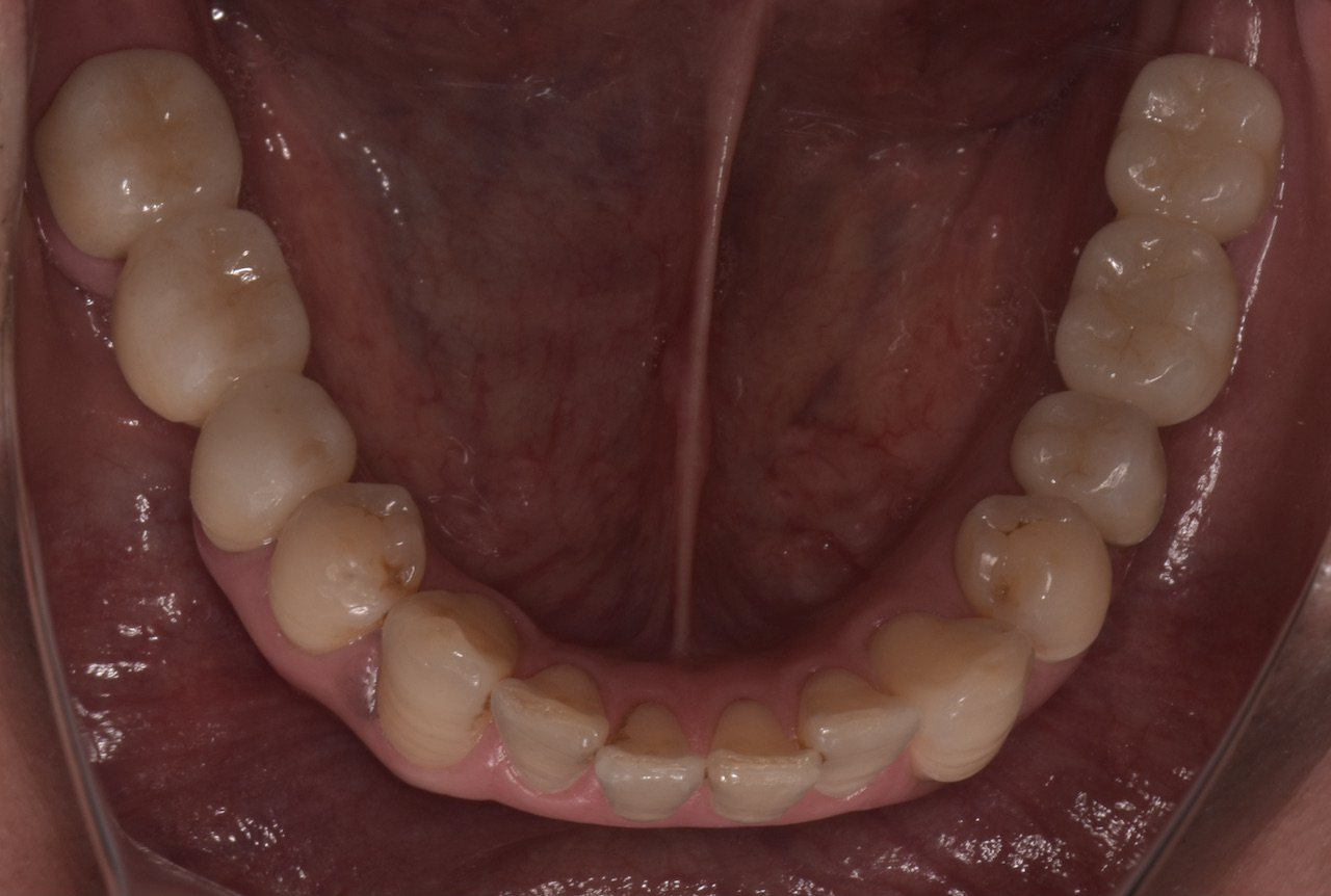 全顎的に複数の治療部位で、インプラント・ブリッジ・ダイレクトボンディング・セラミッククラウンなど、適切な治療方法を組み合わせて包括的な治療を進めました。
