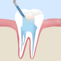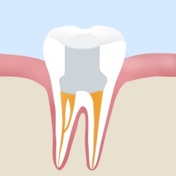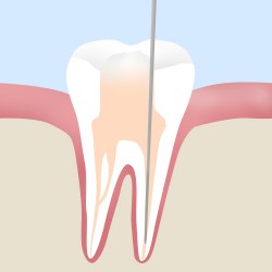 根管内部に薬剤を詰め、細菌の感染を防ぐため密封します。